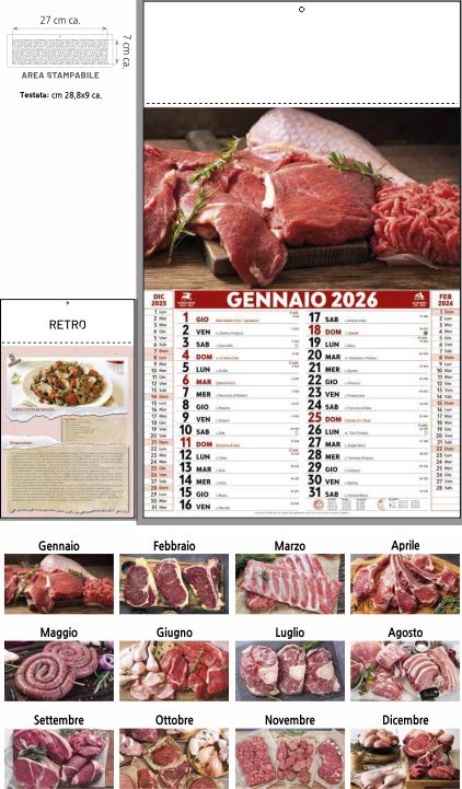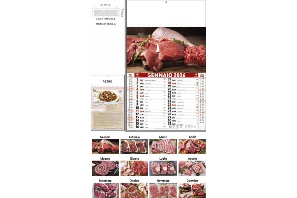 Calendario illustrato, 12 fogli, carta patinata, termosaldato.