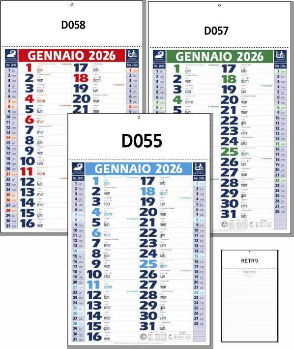 Calendario mensile, 12 fogli, carta patinata, termosaldato.