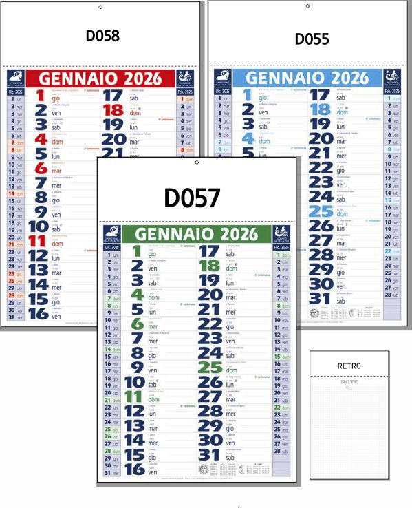 Calendario mensile, 12 fogli, carta patinata, termosaldato.